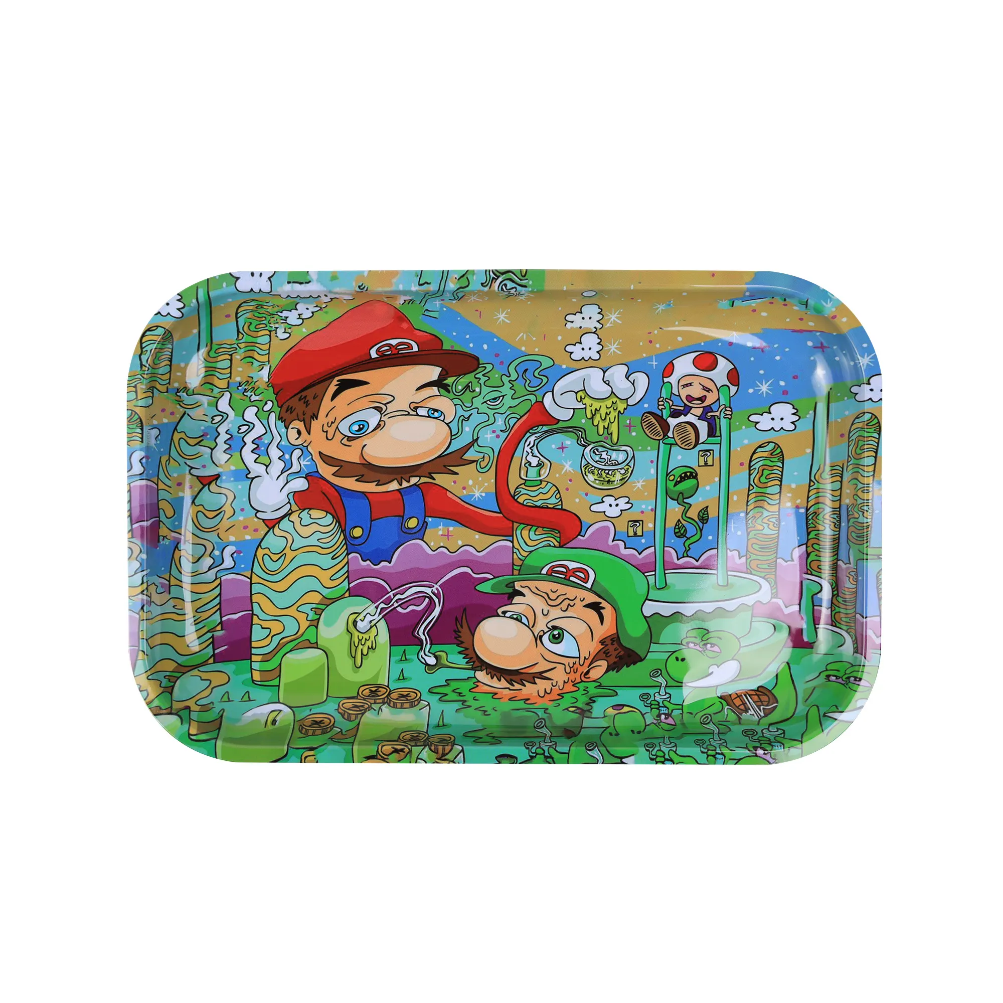 High quality metal rolling tray with a seamless smooth surface. These trays are super easy to clean and will keep your rolling and grinding setup tidy.